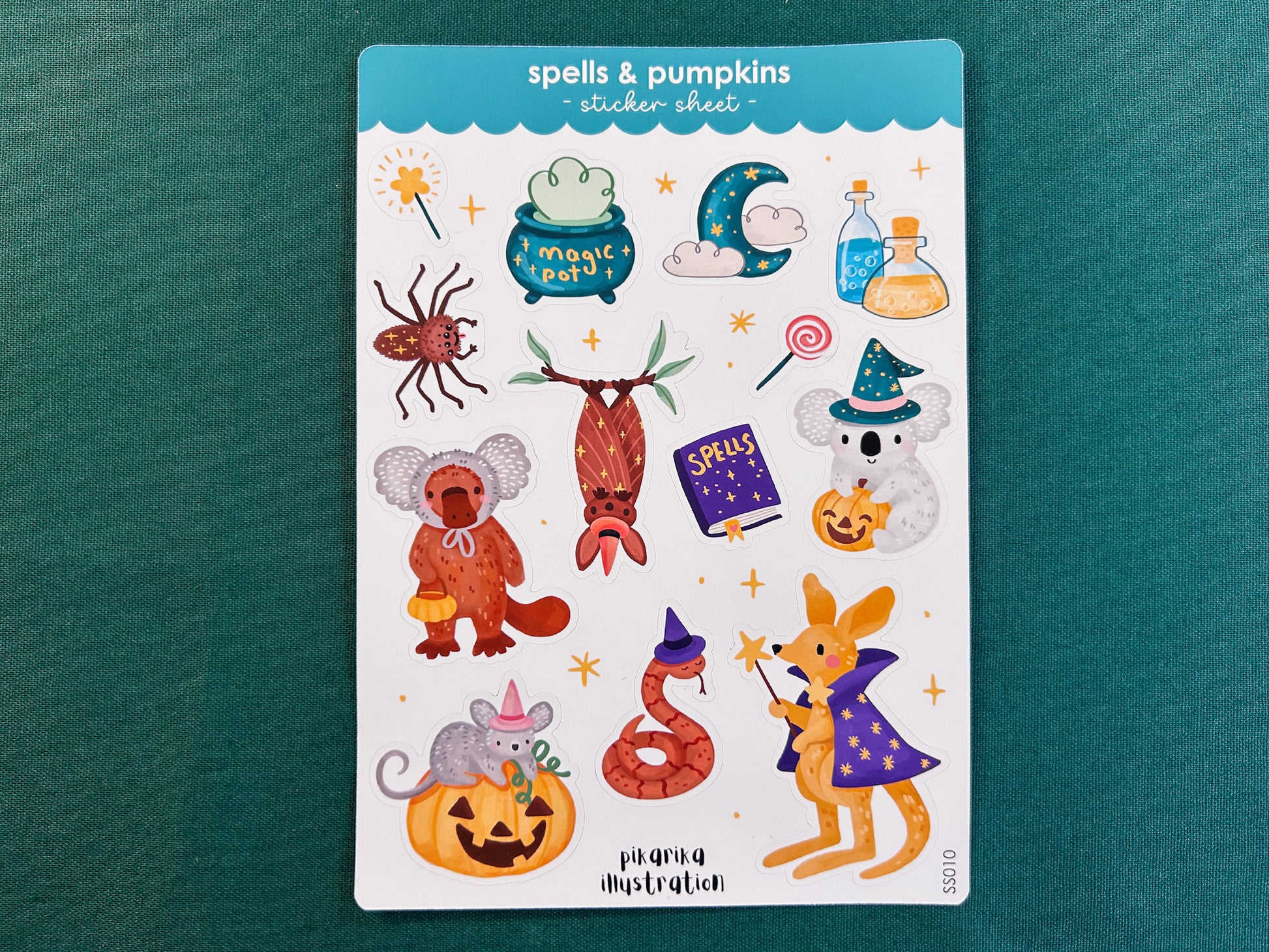 Bring a touch of spooky cuteness to your journals and planners with this Halloween-inspired sticker sheet featuring Australian favourites! You’ll find a koala hugging a pumpkin, a platypus in disguise, a kangaroo in a magic robe, a bubbling pot etc. – all ready to make your projects extra magical. 🎃🪄🦘